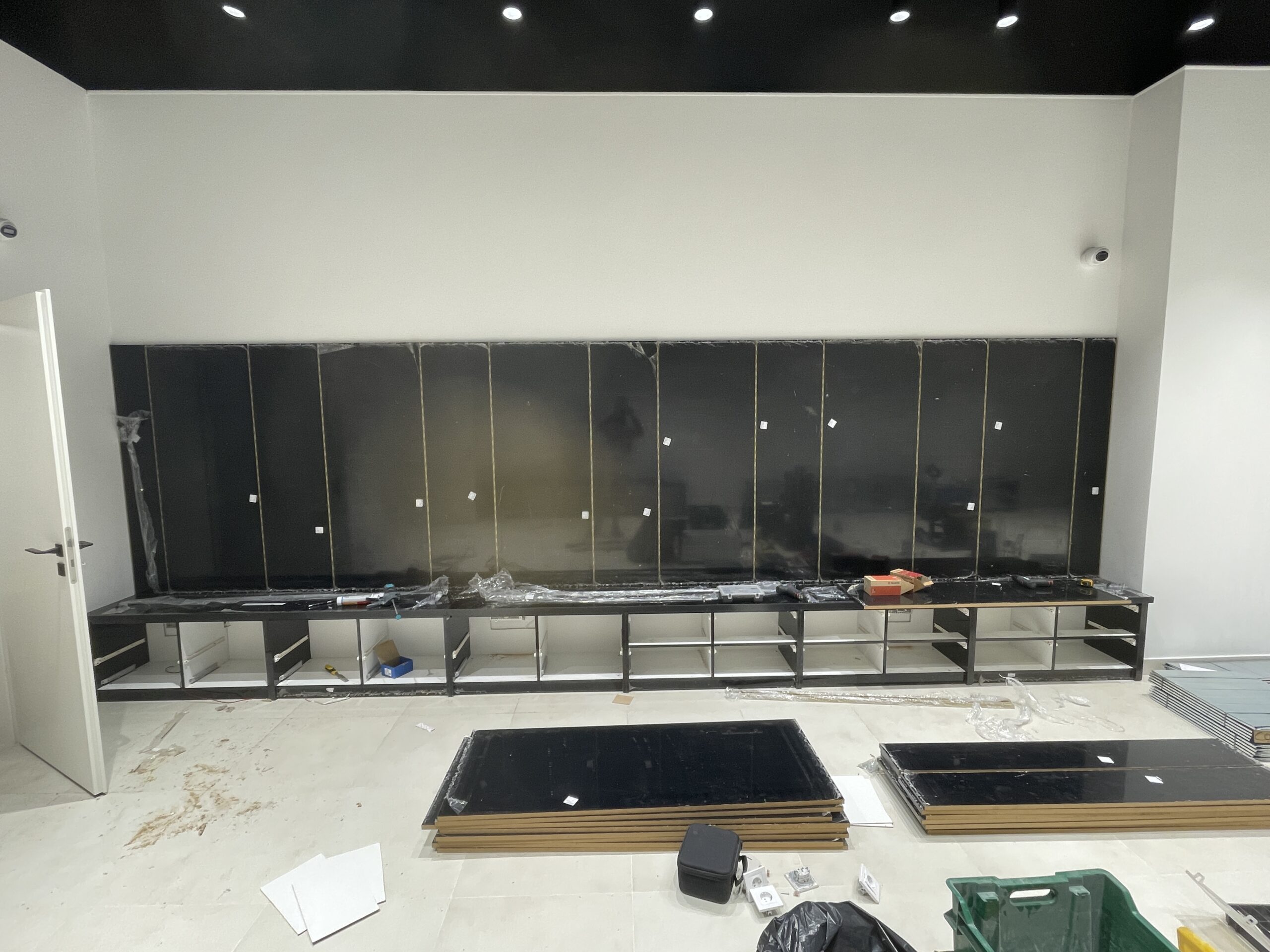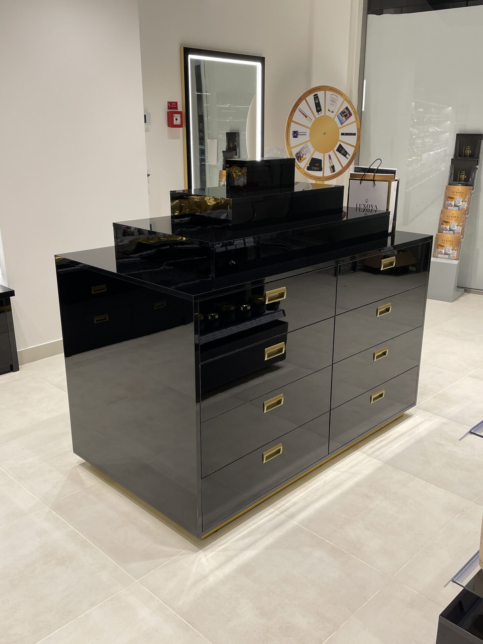 A Váróczi csapata egy határozott, karakteres irányt választott: a fekete dominanciájára épülő enteriőrt. A sötét felületek nem elnyelik, hanem épp ellenkezőleg – kiemelik a termékeket. Minden polc, minden vonal azt a célt szolgálja, hogy a vásárló figyelme a részletekre fókuszáljon. A fekete szín itt nem csupán design elem, hanem hangulat: a luxus, az elegancia és az exkluzivitás vizuális megfogalmazása.