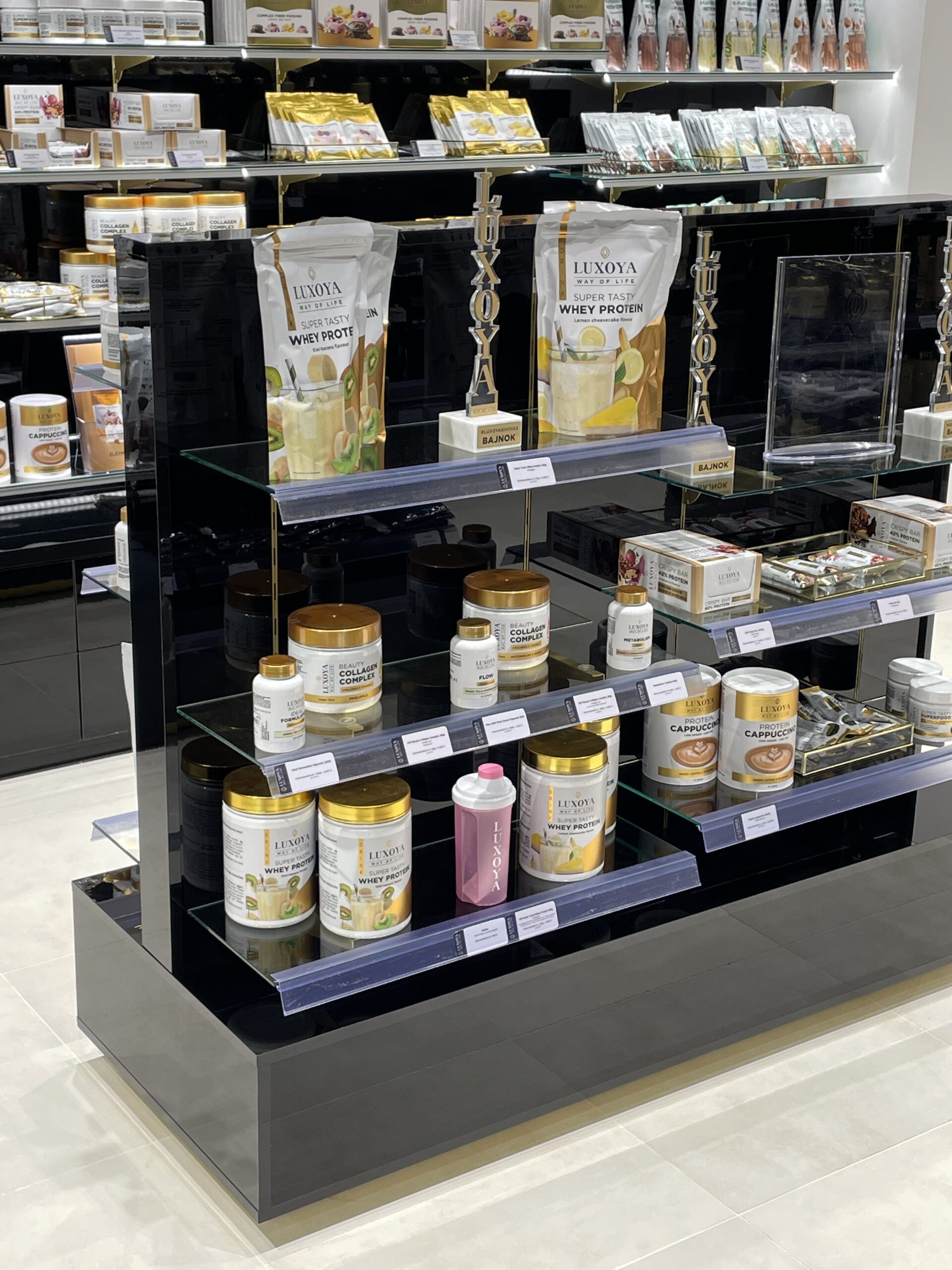 A történet itt is egy vízióval indult. Egy olyan tér megalkotásával, amely nem csupán bemutatja a termékeket, hanem életérzést közvetít. A Luxoya kínálata ugyanis túlmutat a klasszikus szépségápoláson: a prémium hajápolás, sminktermékek és életmód termékek – köztük kiemelten a táplálékkiegészítők – együtt alkotnak egy komplex, „kívül-belül” megújulást támogató világot.